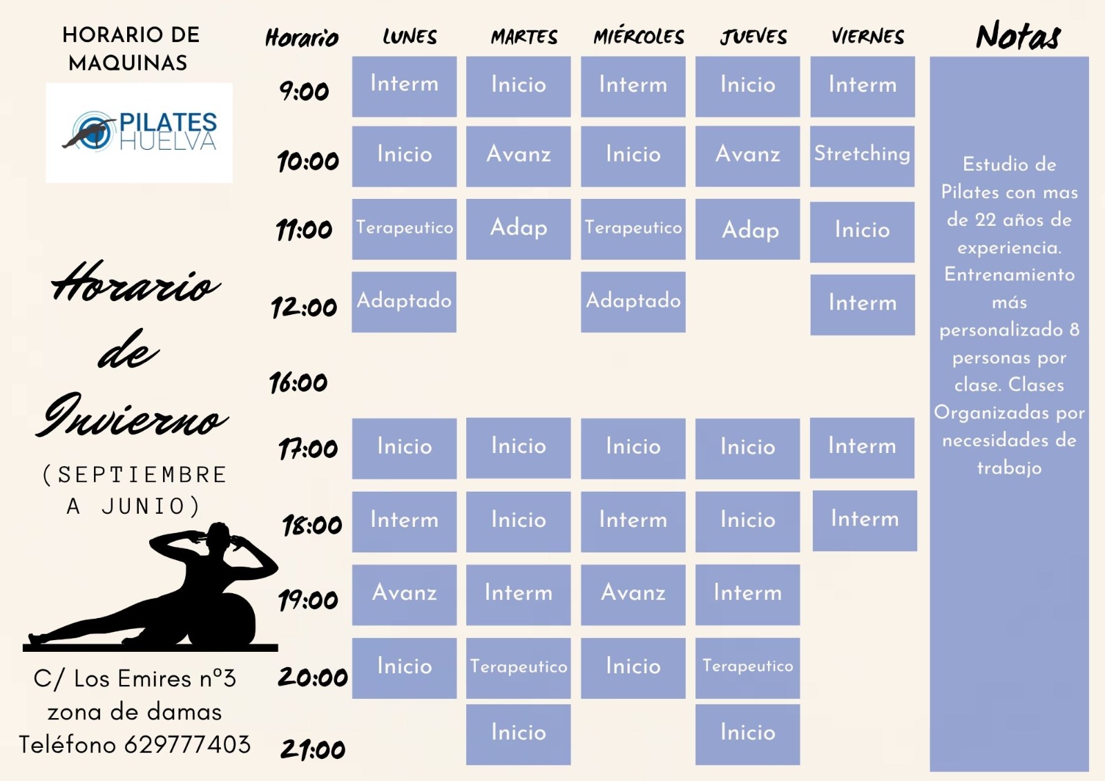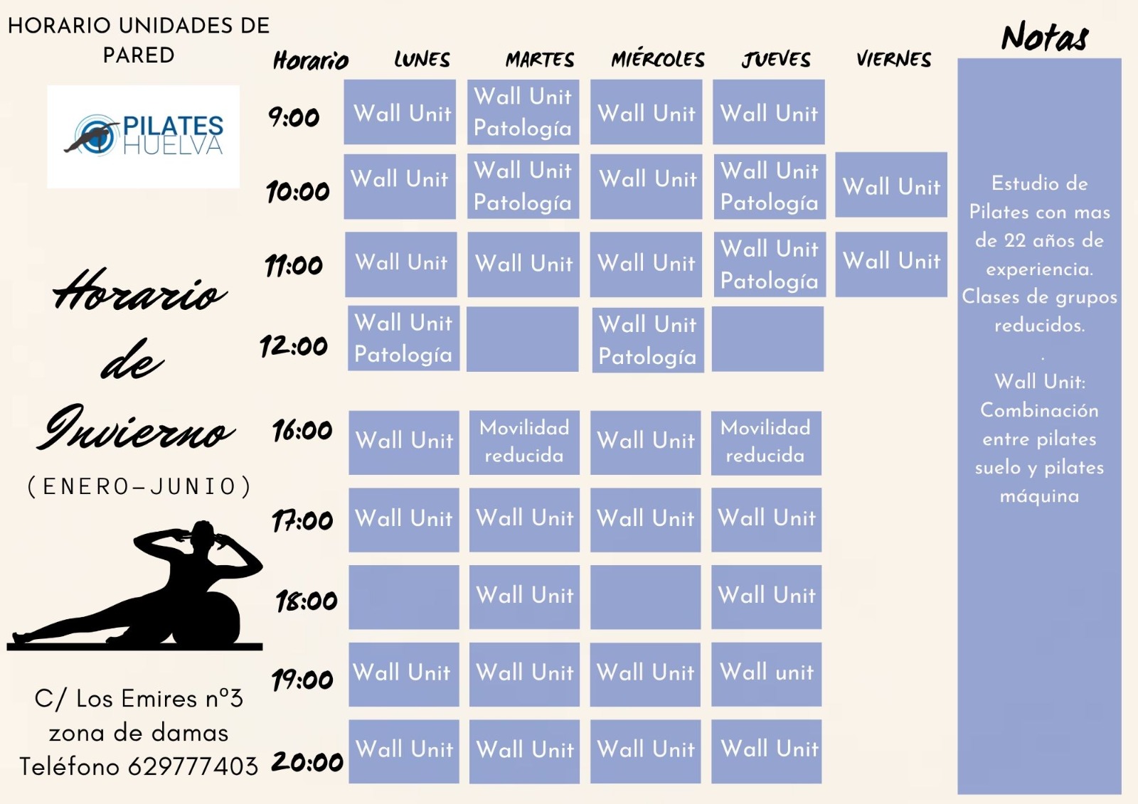 Centro de Pilates en Huelva con más de 25 años ayudando a personas a aliviar el dolor de espalda y mejorar su calidad de vida. Centro especializado con clases de pilates suelo, maquinas, unidades de pared, embarazadas, y tercera edad.